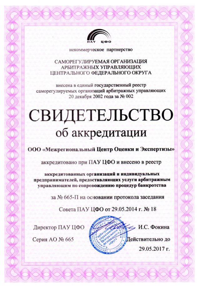Наша компания аккредитована при крупнейших в РФ СРО арбитражных управляющих, в том числе ПАУ ЦФО и СРО АУ Меркурий (см. свидетельства ниже).